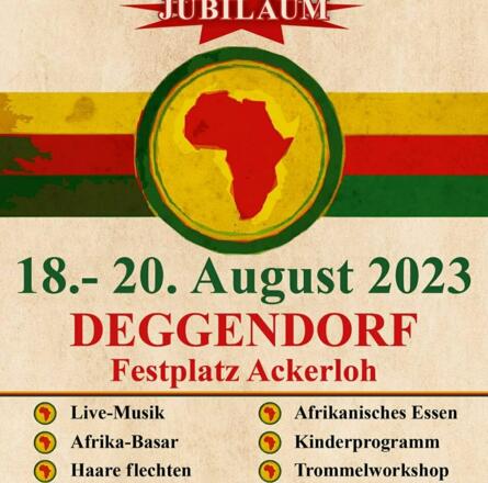 Feiern Sie mit uns die kulturelle Vielfalt Afrikas beim 10. Afrika-Fest in Deggendorf! Erleben Sie ein Wochenende voller Musik, Tanz, Kunsthandwerk und kulinarischer Genüsse aus verschiedenen Regionen des Kontinents. Ob groß oder klein, für alle Besucher gibt es ein buntes Programm mit Workshops, Vorträgen und Kinderaktionen. Wir freuen uns auf Sie! Datum: 18.-20. August. Ort: Ackerloh Festplatzt Deggendorf
