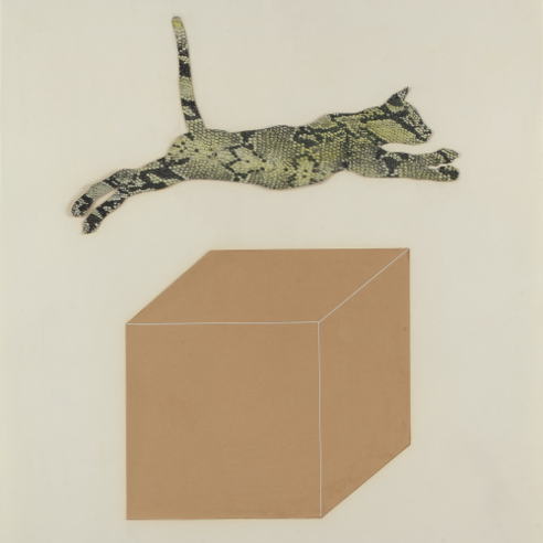 Zu seinen bildnerischen Schlüsselwerken gehört die Collage mit dem Titel „Ein Satz“. Ein Satz bedeutet zum einen die Zusammenfügung sinnbildender Worte, kann aber auch auf den schnellen Sprung einer Katze verweisen. Knogler nimmt die Bedeutungen oder die Doppeldeutigkeit wortwörtlich und übersetzt sie in eine künstlerische Bildsprache. Dazu verwendet er Materialien wie Kunstleder, Papier und Tusche. Ob Bilder oder Worte die wesentlichen Bedeutungsträger sind, bleibt offen. Wichtig sind die Wahrnehmungsprozesse, die durch die Visualisierung ausgelöst werden und neue Inhalte zulassen.