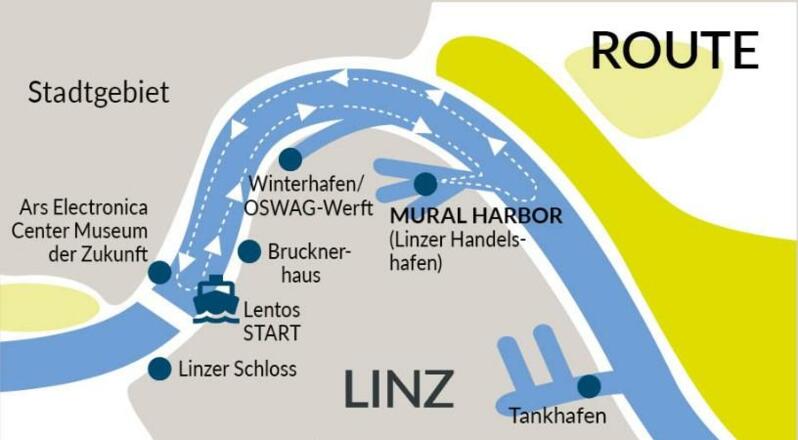 Der im Linzer Handelshafen entstandene „Mural Harbor“ ist Europas größte Graffiti-Galerie und zeigt mehr als 300 teils überdimensionierte Graffitis von Künstlern aus aller Welt. An Bord unserer MS Linzerin erleben Sie bei einer 45-minütigen Tour hautnah vom Wasser aus neue Perspektiven auf dieses beeindruckende Gesamtkunstwerk.