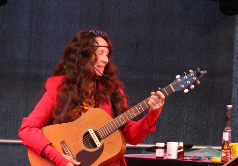 „Sie kommt mit Gesang und Gitarre, sonst nichts! Eine musikalische Zeitreise mit Helga von Hochstein. Das Repertoire der Hippie-Dame enthält überwiegend gecoverte, aber auch eigene Kompositionen, von Balladen über Pop und Soft-Rock, Country, Blues bis hin zu Jazz-Standards.“ Das Bistro und die Bistroterrasse erreichen Sie über unsere Eingangshalle. Keine Tischreservierungen möglich. Bei jeder Witterung!