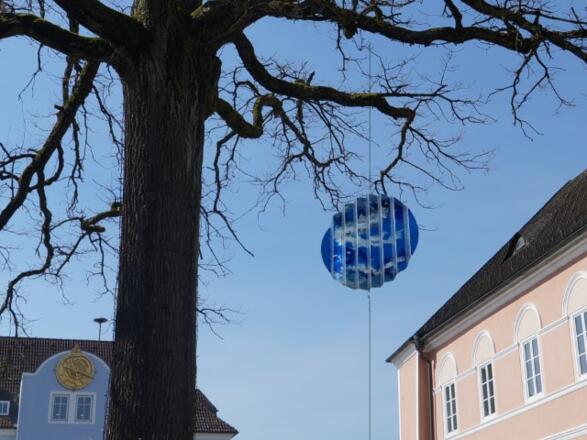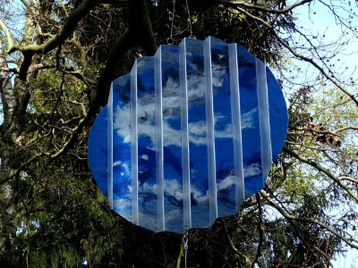 Eine sich im Wind drehende, gefaltete (Himmels-) Scheibe lässt je nach Position und Blickwinkel ein ganzes Bild oder nur Teile daraus erkennen.