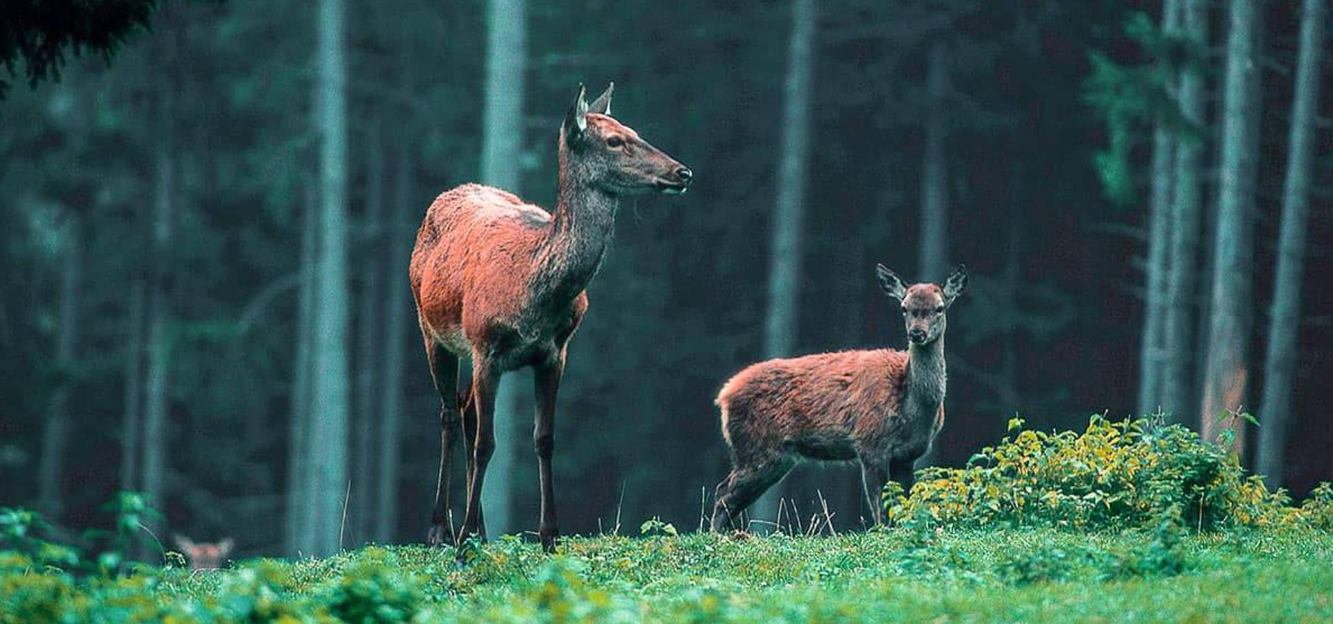In den Sommermonaten bietet sich im Bodinggraben bei Molln die einzigartige Gelegenheit, frei lebende Hirschkühe mit ihren Kälbern zu erleben. Zur Abenddämmerung beobachten wir die Tiere beim Äsen auf der Wiese, ein seltener Einblick in die Kinderstube der Rotwildfamilie.