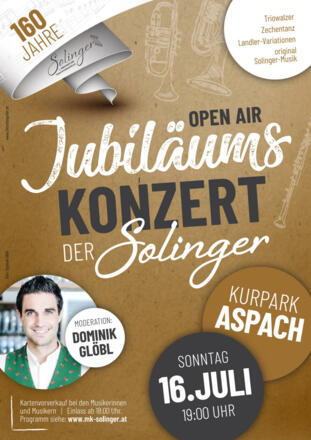 Im Jahr 2023 feiert die 1. Innviertler Trachtenkapelle Solinger ihr stolzes 160-jähriges Jubiläum. Einen Höhepunkt stellt das Openair-Jubiläumskonzert dar, bei dem die Solinger ihren Geburtstag musikalisch feiern.