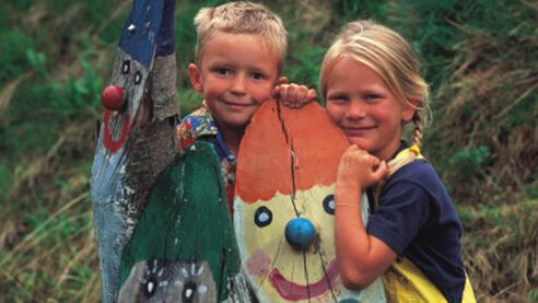 Du erhältst ein Stück Holz und mit Pinsel Farbe und Begeisterung entstehen wahre Kunstwerke.
