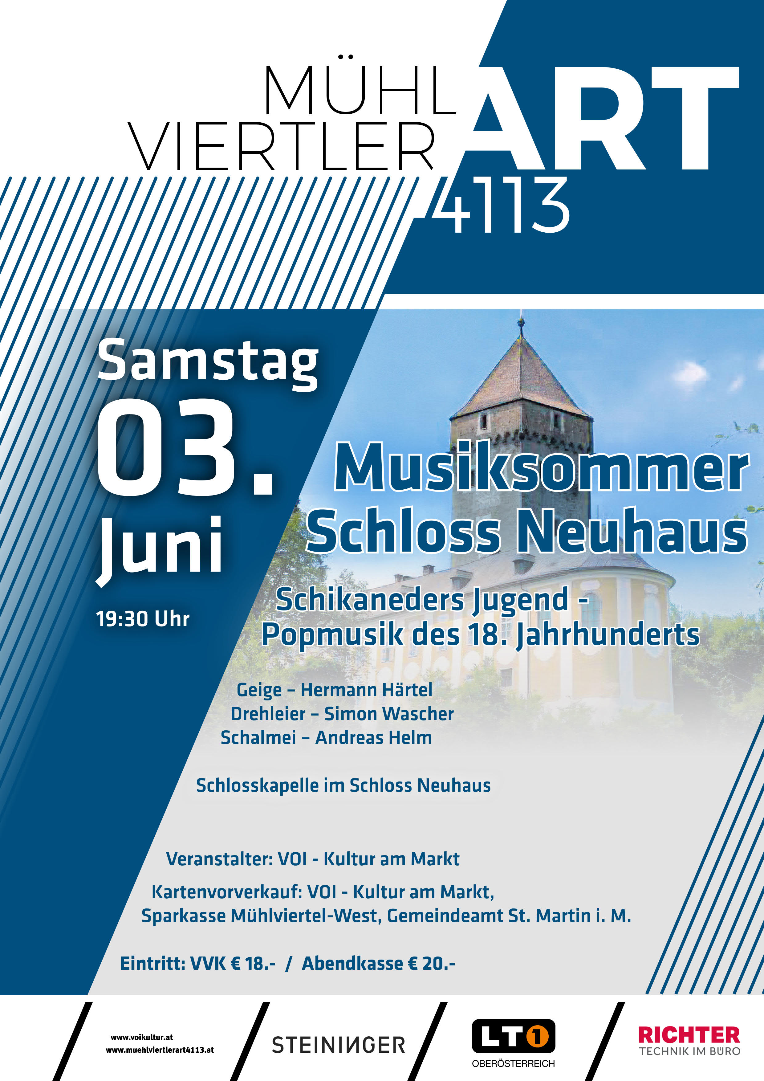 | Preisinformation | Kartenvorverkauf: VOI - Kultur am Markt, Sparkasse Mühlviertel-West, Gemeindeamt St. Martin i.M. Eintritt: VVK EUR 18,00 I Abendkasse EUR 20,00 |