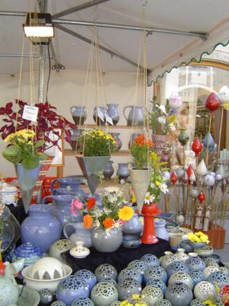 Die Angebotspalette erstreckt sich von Gebrauchsgegenständen bis hin zu Keramikschmuck, Musikinstrumenten, Zimmerbrunnen und Lampen. Vom Mitbringsel bis zum kompletten Speiseservice, von Kunstgegenständen bis hin zu Gebrauchsgegenständen, die den Alltag verschönern, wird alles, was das Herz begehrt, angeboten. Auch Freunde und Liebhaber eleganten und stilvollen Wohnens werden in diesem bunten Treiben auf ihre Rechnung kommen. Der Weg zurück zu irdenen Dingen ist vielleicht der beste Weg zu mehr Lebensqualität und Individualität. Eine schöne Keramikvase voll mit Sommerblumen lässt Einhalt gebieten, in Zeiten von Stress und Hektik.