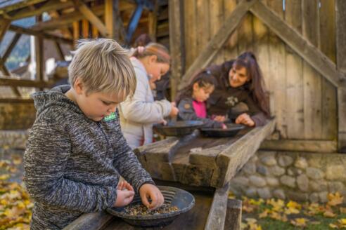 Im Zuge einer kleinen Wanderung entlang des Kendlbrucker Eisenweges dürfen die Kinder in der alten Hochofenanlage kleine Metallbarren gießen. Nach der Besichtigung der Wallfahrtskirche Maria Hollenstein führt die Wanderung wieder zurück zum Erlebnisspielplatz, wo das Pochwerkt in Betrieb genommen wird und Kinder sowie Erwachsene sich auf die Suche nach Gold machen.