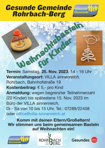 Weihnachtsbasteln für Kinder am Samstag,25.11.2023 von 14.00 Uhr bis 16.00 Uhr
