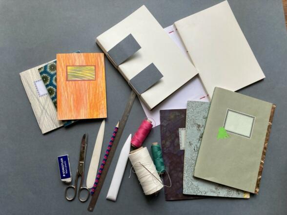 In diesem Workshop können einfache Hefte und 1-2 kleine Bücher ohne Klebstoff hergestellt werden – das Papier wird mit Nadel und Faden genäht!