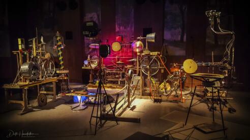 Im Rahmen von Spezialführungen präsentieren die zwei Musiker und Instrumentenbauer Paul Skrepek und Andreas Platzer ihre Installation "DIE MASCHIN":