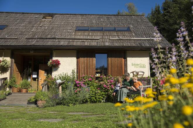 Wir genießen bei einem Spaziergang durch den Schaugarten unsere bunte, duftende Pflanzenwelt und die Vielfalt der Kräuter und lassen uns von den Farben und Düften verzaubern.