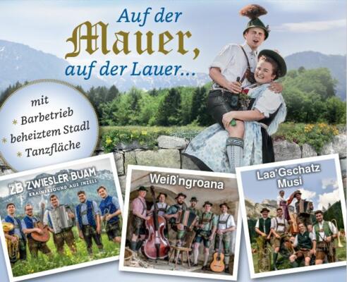 Zünftiges Sommerfest des GTEV Heutau unter dem Motto Auf der Mauer, auf der Lauer - Bayrisch bis Oberkrain mit Barbetrieb, beheiztem Stadl und Tanzfläche. Tanz mit de Weiß'ngroana und de Zwiesler Buam.