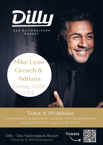 Inkludierte Leistung: Eintrittskarte zu MIKE LEON GROSCH & ADRIANA Inkl. Gourmet Buffet & alkoholfreie Getränke vom Getränkebrunnen