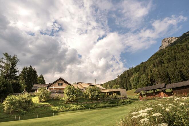- Forellenfilet aus dem Fuschlsee oder Tofu: über Buchen- und Apfelholz zart geräuchert, dazu kalte Erbsen-Minz Suppe mit Zitrone