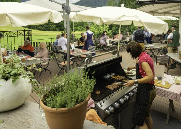 - Zarte Maishendelbrust & Huftsteak vom Grill: dazu wechselnde Beilagen wie Ofenkartoffeln, Grillgemüse und mehr