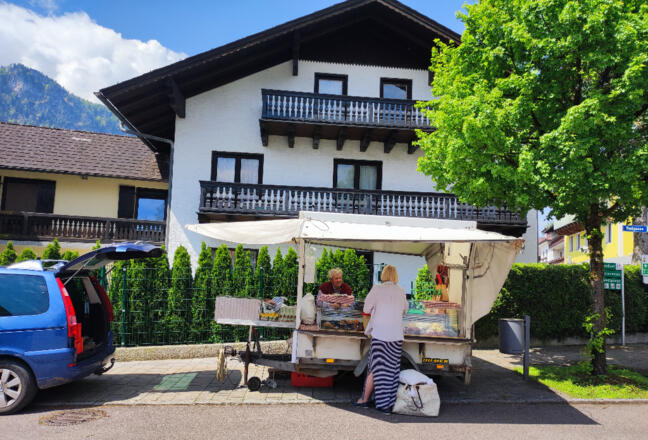 Frische Speck- und Käsespezialitäten, Leberkäse und wechselnde Schmankerl, wie selbstgemachte Butter, Käsepressknödel, Leberknödel und vieles mehr.