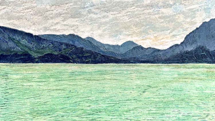 Für die Ausstellung WAS UNS VERBINDET hat er sich einmal mehr von der Schönheit unserer Umwelt inspirieren lassen. Majestätische Berge und glasklare Seen, die uns einerseits trennen, doch andererseits auch verbinden.