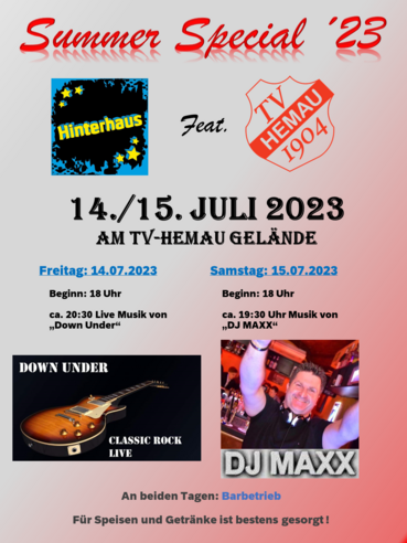 Der TV-Hemau und das Hinterhaus Hemau veranstalten gemeinsam wieder ein Summer Special für Jung und Jung gebliebene.