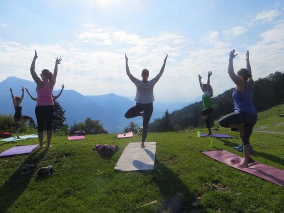 Im Garten des Landhotels Hochlackenhof praktizieren wir gemeinsam und lassen anschließend den Vormittag bei einem gemütlichen Frühstück ausklingen.