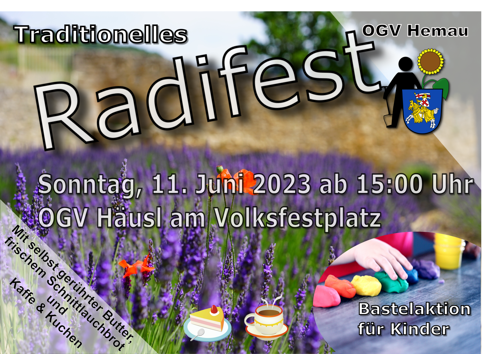 Der OGV Hemau lädt Sie ganz herzlich zum diesjährigen Radifest ein. Freuen Sie Sich auf frischem Radi, selbst gerührter Butter frischem Schnittlauch und rustikales Bauernbrot. Zudem bieten wir noch Kaffee und Kuchen an.Für unsere kleinen Gäste veranstaltet unsere Kindergruppe eine Bastelaktion.