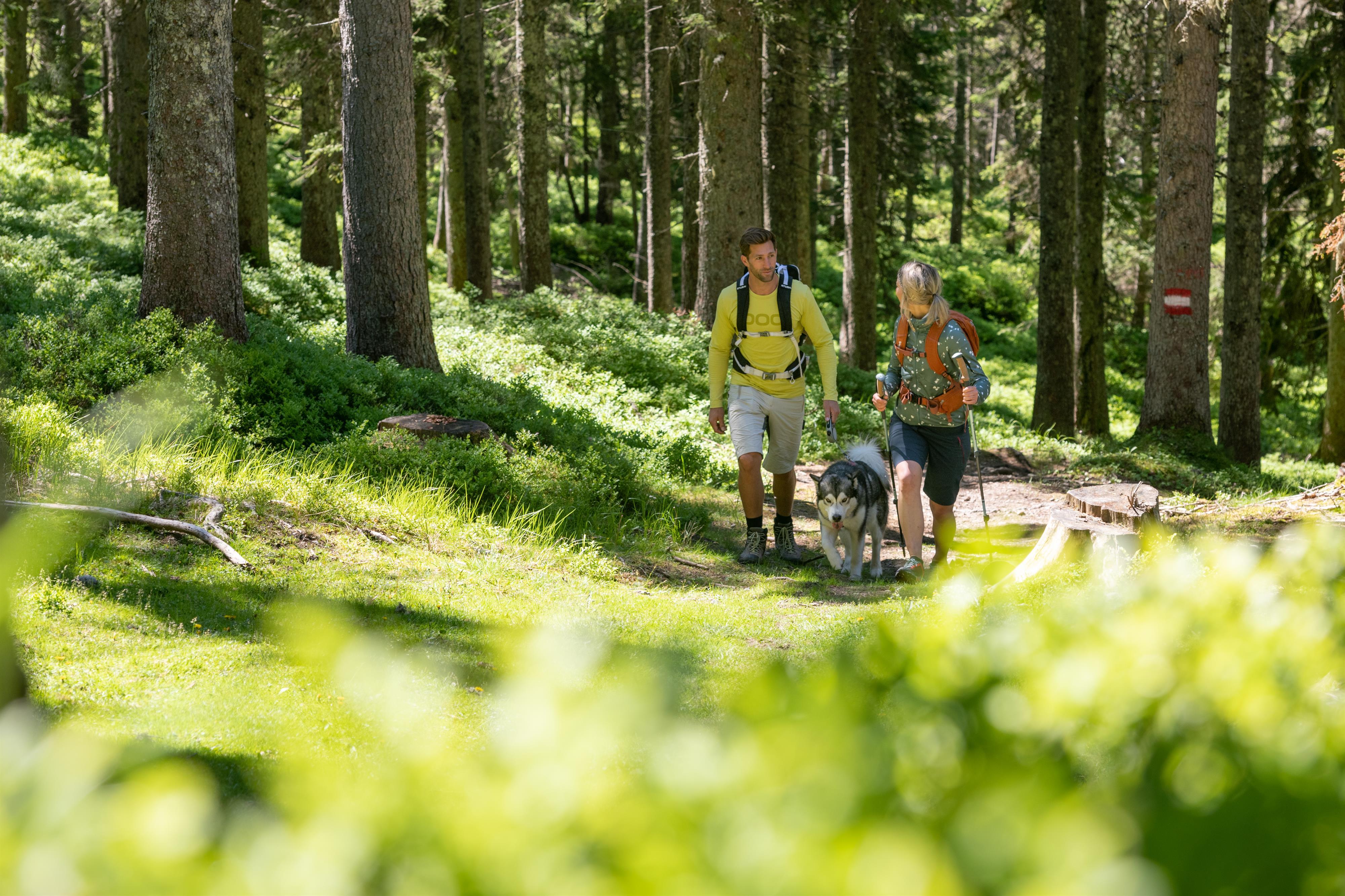 Nach Einkehr in der Hütte geht es wieder zur Bushaltestelle "Resialm". Von hier geht es mit dem Wanderbus zurück zum Postamt.