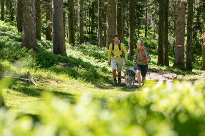 Fahrt mit dem Wanderbus auf den Rossbrand (kostenlos mit Guest Mobility Ticket). Von dort aus führt die Wanderung zur Oberhagmoosalm.
