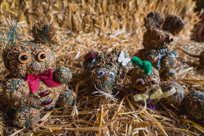 Erlernt die Kunst des traditionellen Heufiguren basteln beim Bauernhof Großwidmoos.