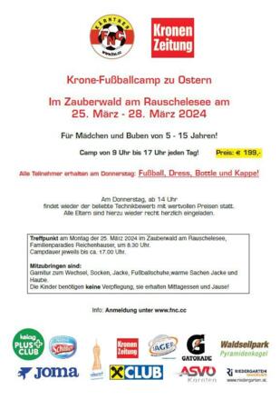 Mitzubringen sind: Garnitur zum Wechsel, Socken, Jacke, Fußballschuhe,warme Sachen Jacke und Haube. Die Kinder benötigen keine Verpflegung, sie erhalten Mittagessen und Jause!