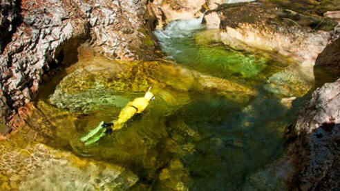 Hier begleiten wir Euch zu einer Wanderung entlang des Gimbach bergauf und anschliessend mit Neopren und Schnorchelausrüstung, durch den Bach, wieder hinunter zu Ausgangspunkt.