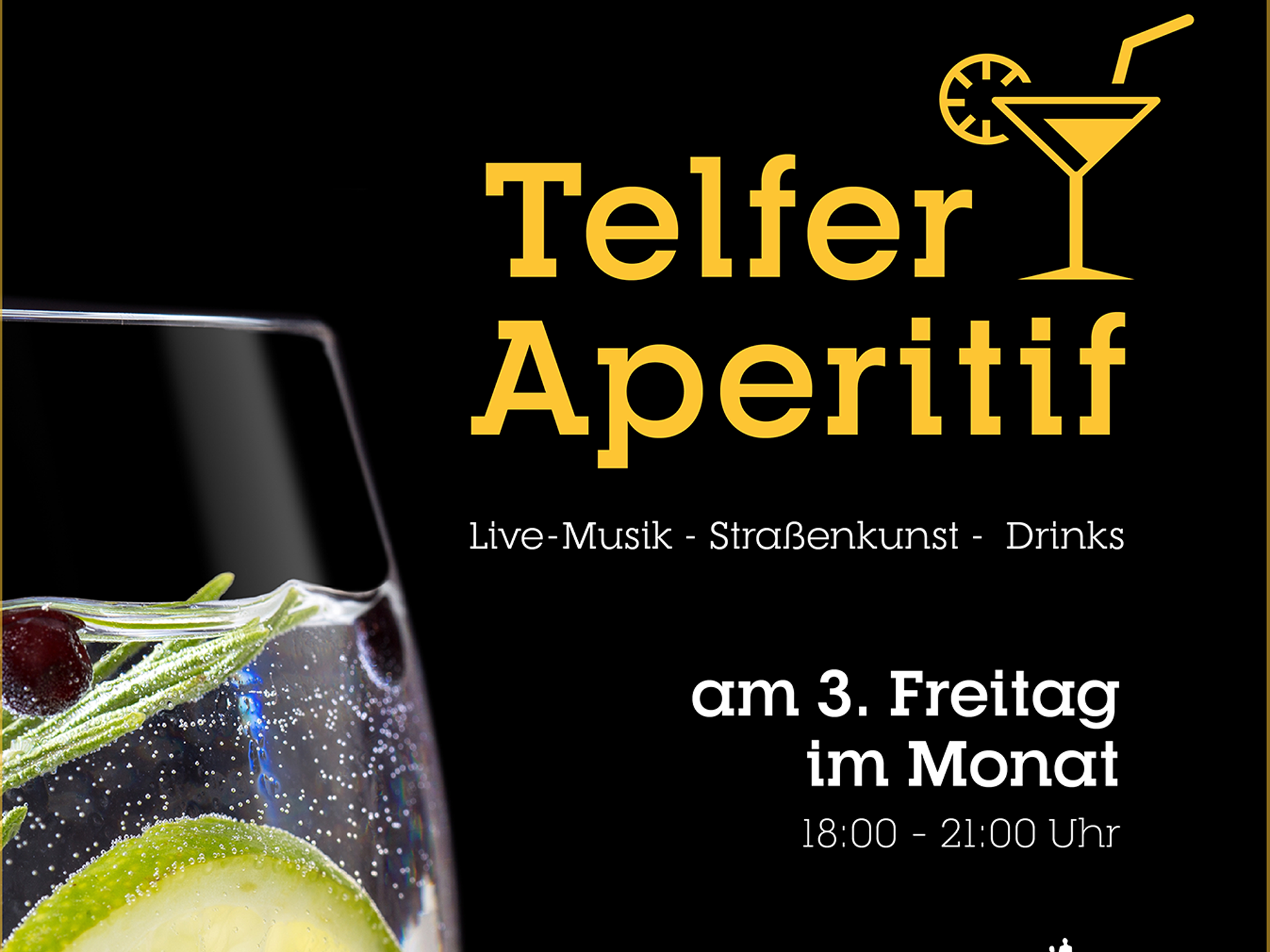 Von Mai bis September steht die Telfer Fußgängerzone am 3. Freitag im Monat von 18:00 - 21:00 Uhr ganz im Zeichen des Telfer Aperitifs. Außerdem können attraktive Walking Acts vom „Spielvolk“, sowie kleine Showeinlagen von Überraschungskünstlern bewundert werden.