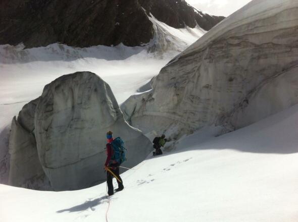 Obergurgl - Auffahrt mit der Hohe Mut Bahn zur Bergstation - Bärenhoppet - Gaisbergtal - Gaisbergferner - Gletscherwanderung und Übungen (Abseilen, Steigeisentechnik,...) - Mittelstation - Obergurgl.