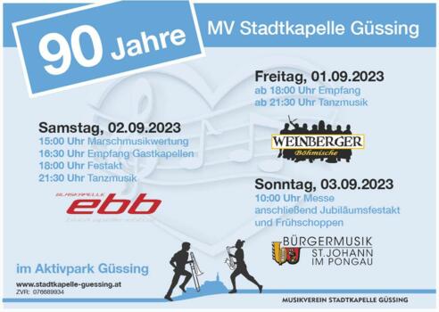 3 Tagesfest anlässlich des Jubiläums "90 Jahre Musiverein Stadtkapelle Güssing"