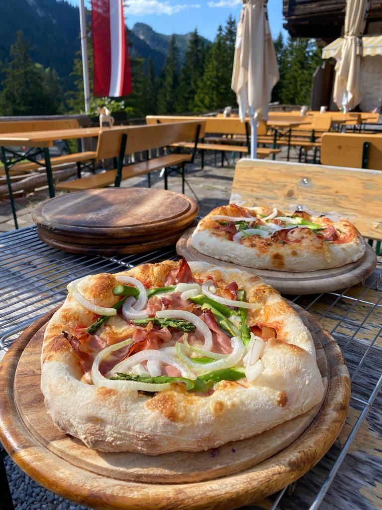 Kommt zur Vilser Alm und genießt ein leckere Almpizza mit tollem Ausblick / Das Team der Vilser Alm freut sich auf euer Kommen!
