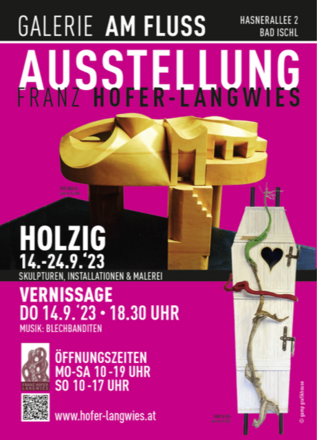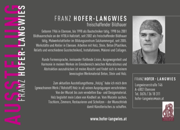 Unter dem Titel "HOLZIG" zeigt der freischaffende Bildhauer Franz Hofer-Langwies neue Werke in der Galerie AM FLUSS in Bad Ischl.