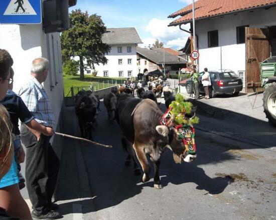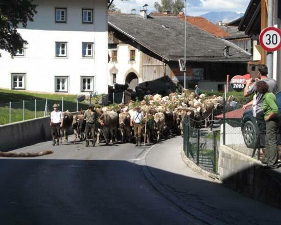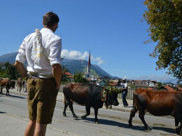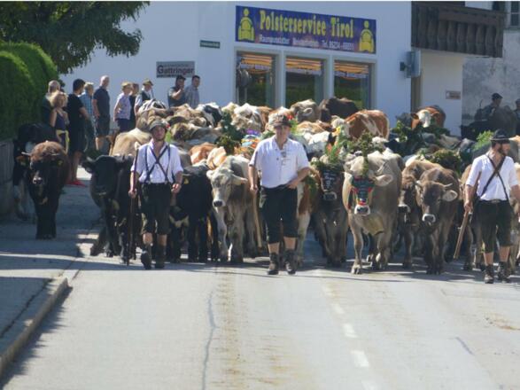 Ein absolut authentischer und sehenswerter Tiroler Brauch! Auch heuer wieder findet der alljährliche Almabtrieb von den umliegenden Almen und Weidegebieten statt. Die Tiere werden um ca. 12:30 Uhr am Axamer Dorfplatz erwartet. Begleitet von den Almhirten, Helfern und den stolzen Besitzern zieht die große Rinderherde dann weiter bis zum Sammel- und Verladeplatz beim "Buchers Feld" (visavis Apotheke). Auch die Axamer Kirchtagsschnöller sind mit dabei und zeigen beim traditionellen „Goasslschnöll’n“ ihr Können.