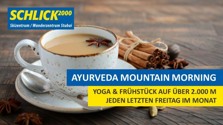Von Juni bis September bietet die Schlick 2000 jeden letzten Freitag im Monat ein besonderes Event an: Mit dem Ayurveda Mountain Morning verbinden wir die traumhafte Morgenstimmung auf über 2.000 Metern mit ausgleichenden Yoga-Asanas sowie einem energiespendenden ayurvedischem Frühstück im Panorama Restaurant Kreuzjoch. Kommen Sie vorbei uns überzeugen Sie sich selbst!