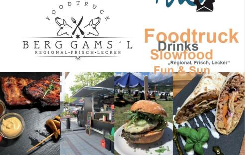 Berg Gams'l Foodtruck, Drinks, Slowfood "Regional, Frisch, Lecker", direkt im Ortszentrum hinter dem Hotel "Das Walchsee Aktivresort". Nur bei schönem Wetter!