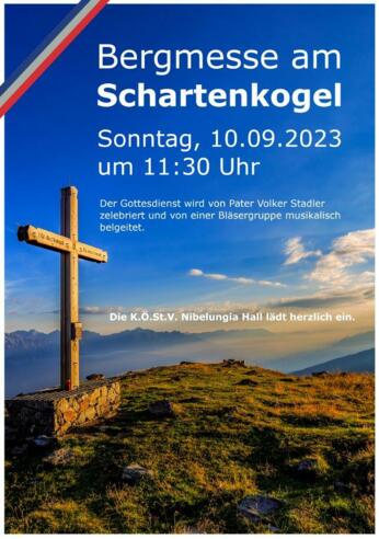 Die Katholische Österreichische Studentenverbindung Nibelungia Hall lädt zur Bergmesse am Schartenkogel am Sonntag, 10. September 2023, um 11.30 Uhr.