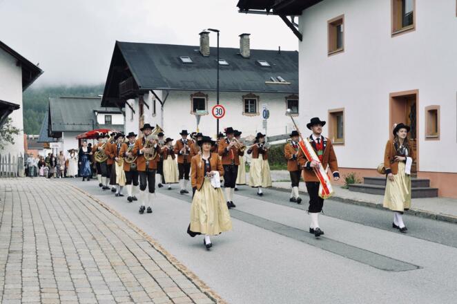14:00 Uhr: Einmarsch der Musikkapellen Seefeld, Leutasch, Scharnitz und Reith zum Pavillon Reith, wo anschließend der Gottesdienst und der Festakt stattfinden