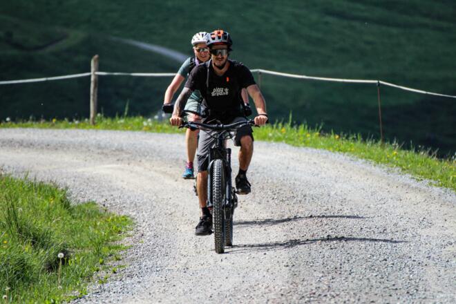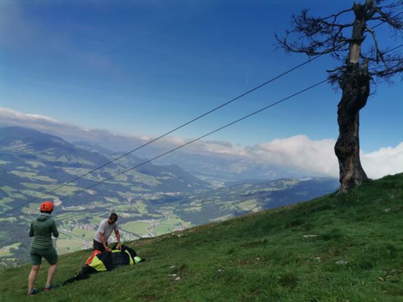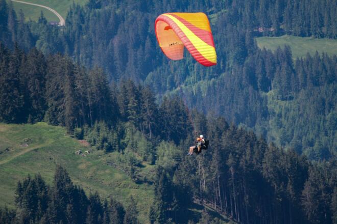 Ein unvergessliches Erlebnis in Zusammenarbeit mit der Flugschule Westendorf ist das Bike & Fly. Wir fahren von der Talstation der Alpenrosenbahn mit dem E-Bike entweder auf die Choralpe oder zum Bergrestaurant Talkaser. Nach der idyllischen Panoramafahrt und einer kleinen Stärkung fliegen wir mit einem unserer erfahrenen Tandempiloten mit dem Paraglider zurück ins Tal zum Ausgangspunkt. Ein atemberaubender Programmpunkt mit eindrucksvollen Ausblicken auf das Brixental aus der Vogelperspektive! Das Leihbike kann übrigens auch am Nachmittag noch genutzt werden.
