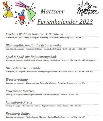 Die Anmeldung und Bezahlung zu den gewünschten Veranstaltungen wird über die Marktgemeinde Mattsee abgewickelt.
