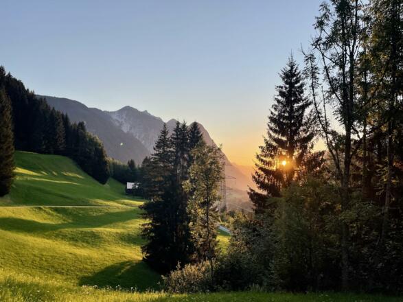 Während die Sonne langsam untergeht, starten wir unsere Abendwanderung. Gemeinsam bewundern wir den Sonnenuntergang bei einer Jause in den Bergen.