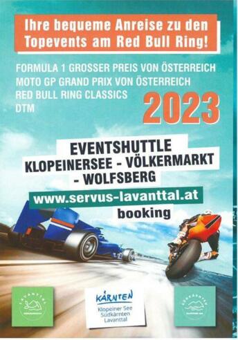 Ihre bequeme Anreise vom Klopeiner See, Völkermarkt und Wolfsberg zu den Top Events am Red-Bull Ring!