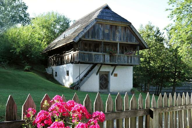 Dr. Johann Schwertner, Abteilung Institut für Volkskunde kärnten.museum, führt zu ausgewählten Häusern im Kärntner Freilichtmuseum Maria Saal und erläutert die typischen Architekturformen aus den historischen Hauslandschaften Kärntens.
