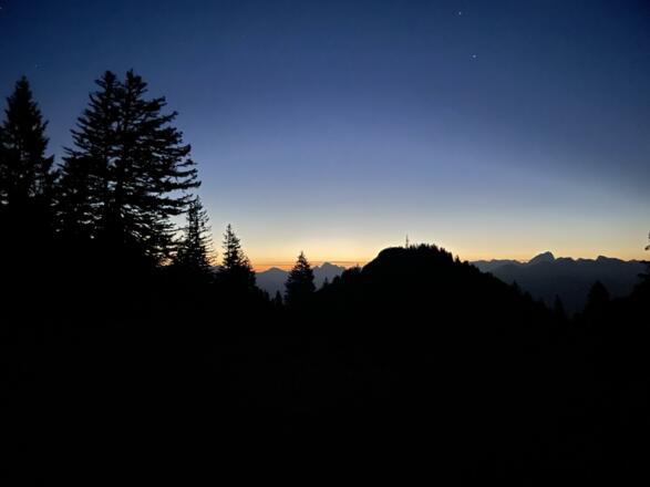 In der Stille des Morgens, begleitet von Wanderführerin Angi, offenbart sich die Schönheit eines Bergsonnenaufgangs. Zusammen erreicht ihr den Gipfel auf fast 2.000m, wo die aufgehende Sonne den Himmel in ein Spektakel aus Licht und Farben verwandelt. Der frühe Aufbruch in den Tag verspricht unvergessliche Momente.