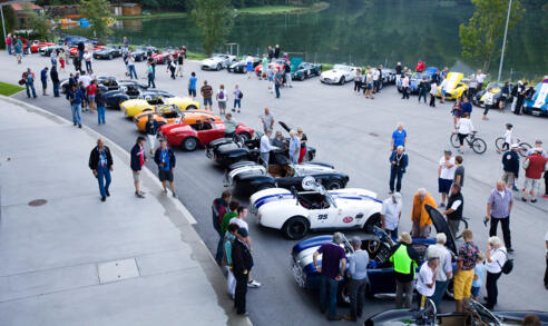 Von 9 - 10.30 Uhr können an der Max Aicher Arena über 100 AC/Shelby Cobra, Daytona Coupe und Ford GT-Fahrzeugen aus ganz Europa bestaunt werden, bevor sie sich auf den Weg zum Histo Cup 2023 auf dem Salzburg Ring machen.