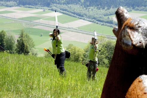 Verleih und Einführung in den Bogenschießsport - schießen auf Platten. Sie lernen die richtige Handhabung von Pfeil und Bogen (ohne Parcoursbenutzung).