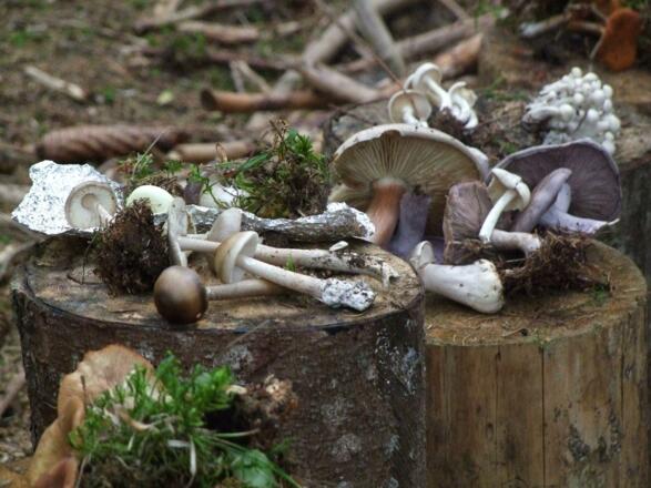 Mit einem Korb und Alufolie ausgerüstet geht die Fahrt in den Wald, wo Pilze gesammelt und erklärt/besprochen werden