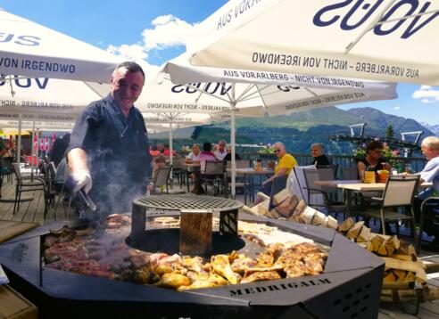 Die gemütliche Terrasse, die immer noch warme Sonne im Gesicht, der Duft von heißer Glut im Grill und die Vorfreude auf all die Köstlichkeiten, die darauf zubereitet werden – das alles bekommt in See ein Upgrade! Denn beim Grill & Chill auf der Medrigalm geht es im Oktober auf 1.850 Höhenmeter nochmal heiß her. Nach einem genüsslichen Aperitif startet zu Mittag der Grillspaß auf dem Designholzgrill richtig durch. Dazu werden ein umfangreiches Salat- und Beilagenbuffet und ein Dessertbuffet geboten.