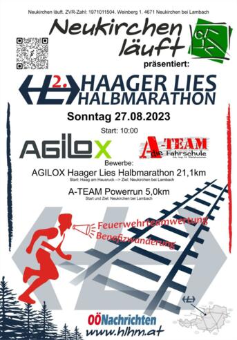 10:00 Start AGILOX Haager Lies Halbmarathon in Haag am Hausruck 200m südlich des eh. Bahnhofsareals direkt am Geh- und Radweg.